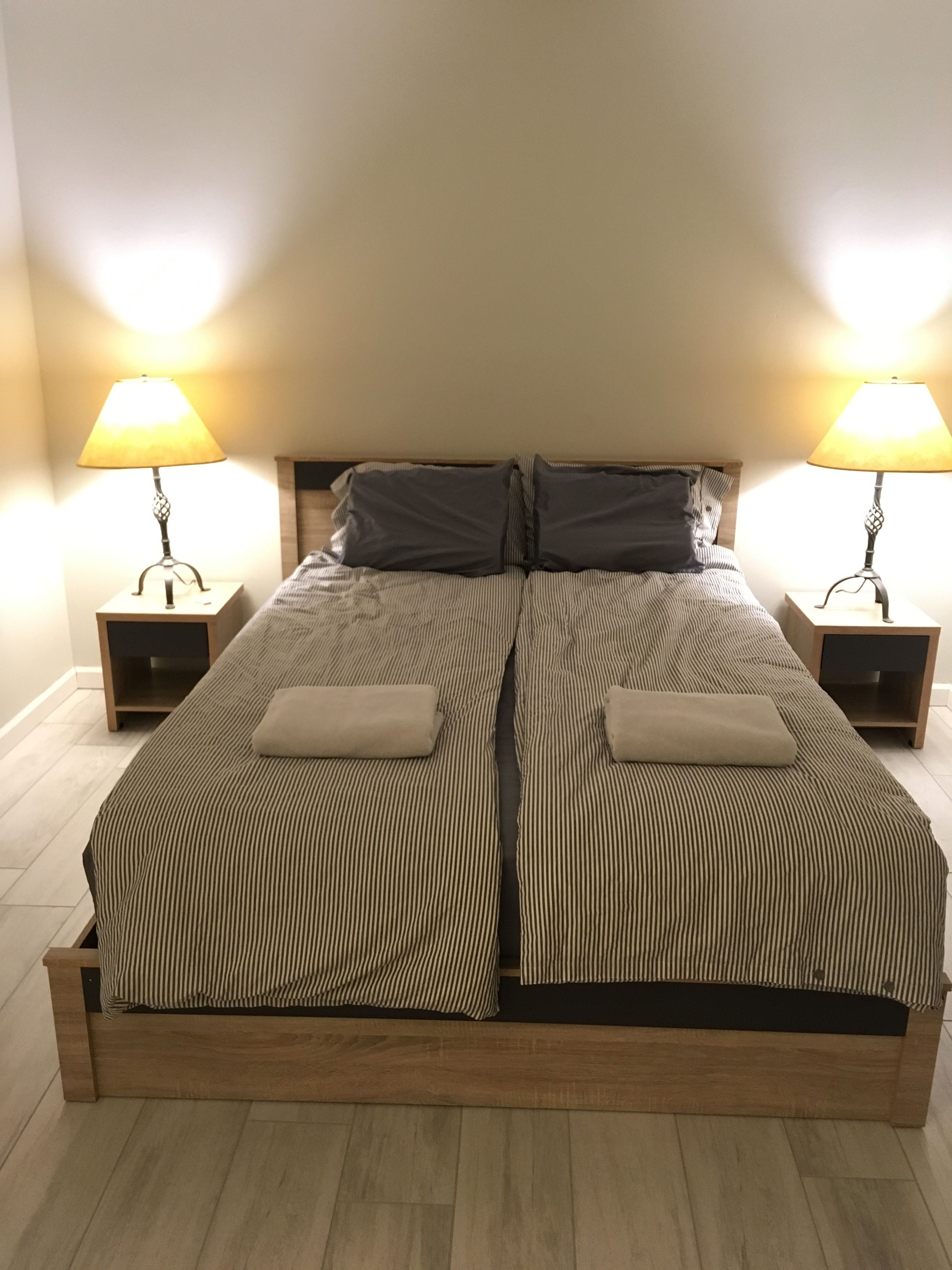 The bedroom has a large king bed with memory foam mattress. Dual closets for plenty of hanging storage. Additionally a large dresser with full mirror and large chest of drawers for additional storage.